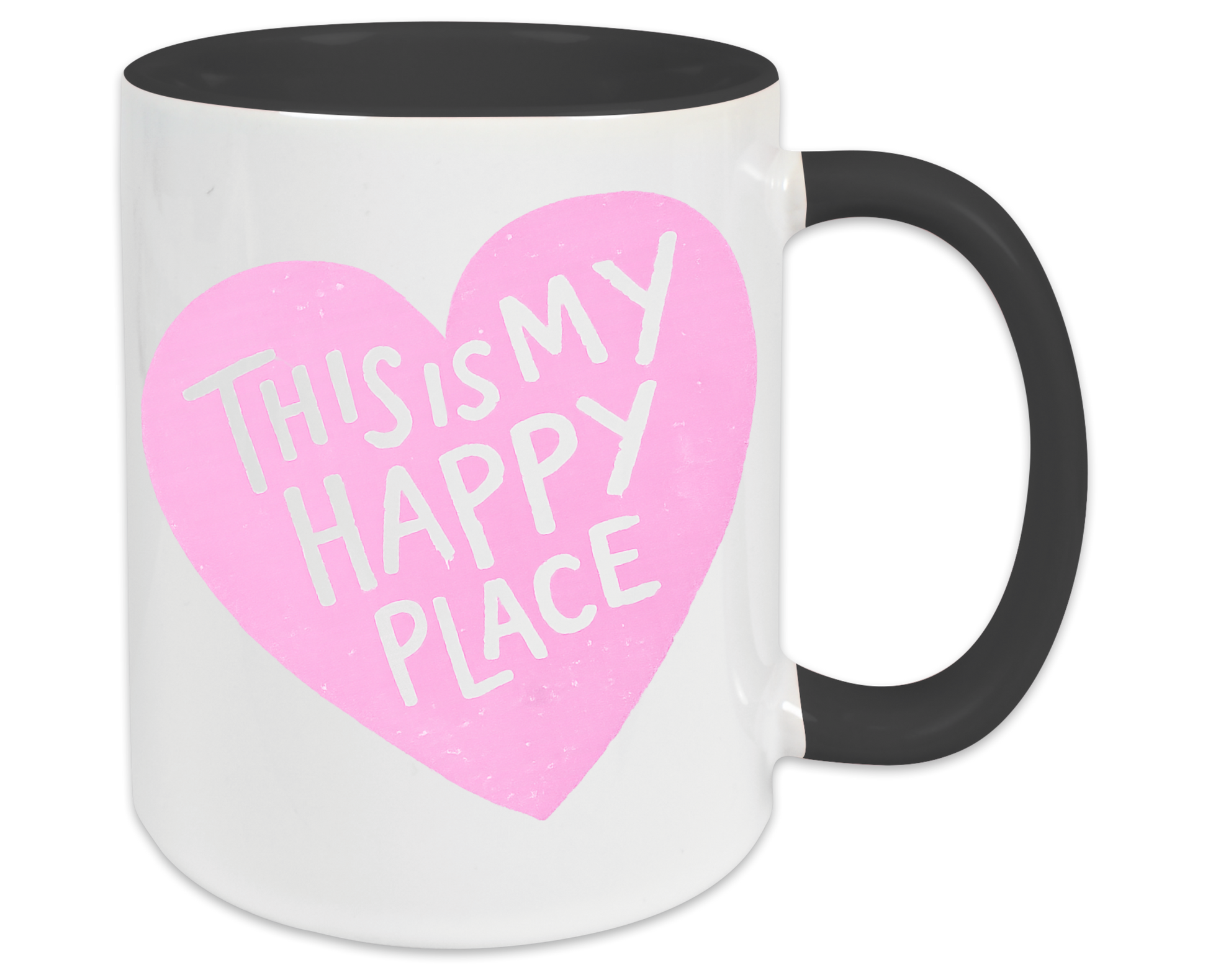 Diese „This Is My Happy Place“-Tasse ist pure gute Laune in Keramikform. Das große Herzmotiv in kräftigem Pink oder Rot kombiniert mit der handschriftlichen Typografie macht sie zu einem echten Wohlfühl-Statement – perfekt für alle, die ihren Kaffee-, Tee- oder Cocoa-Moment zu etwas Besonderem machen wollen.